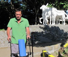 Hanish half mir auf die Beine, ich stand unsicher, aber ich stand; langsam folgte ich seinen Anweisungen: “lift left leg and inhale, step forward -exhale, step by step and think in your mind the mantra „so-ham so-ham“ (ich bin-ich bin) with every step.” Und so gingen wir langsam im Kreis, zuerst gestützt von Hanish und mit Stock, dann nur mit Stock, und einen Tag später allein und frei. Seit diesem Morgen bin ich den Weg nach Sahenna oder zu anderen Therapien stets allein mit dem Rollator gegangen. Ich wurde immer sicherer, zwei Wochen später konnte ich dann auch Treppen ohne Geländer frei gehen, allerdings nur wenn Hanish zugegen war und unter Zuhilfenahme von so-ham.